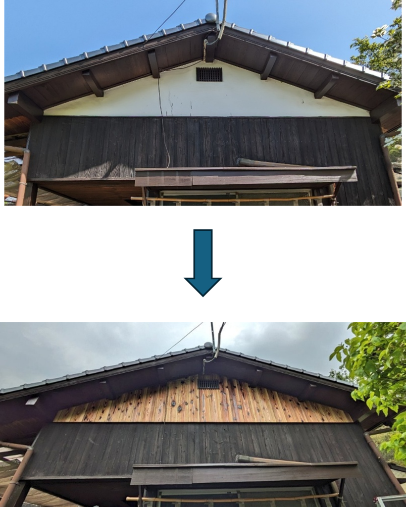 お客様と相談して色決めしましたが、既存の焼板と違和感のない仕上がりになって良かったです。