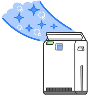 空気清浄機は、部屋の空気を吸い込み、フィルターで汚れをキャッチしています。