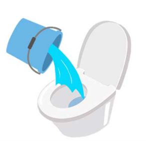 便器の水を抜き、バケツで汚物を流し、電源を入れると停電用ダイヤルが