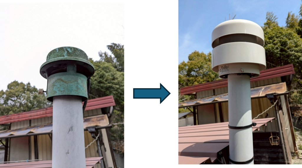 汲み取り式のトイレで臭いがとれにくくなったことから、換気扇を交換することになりました。