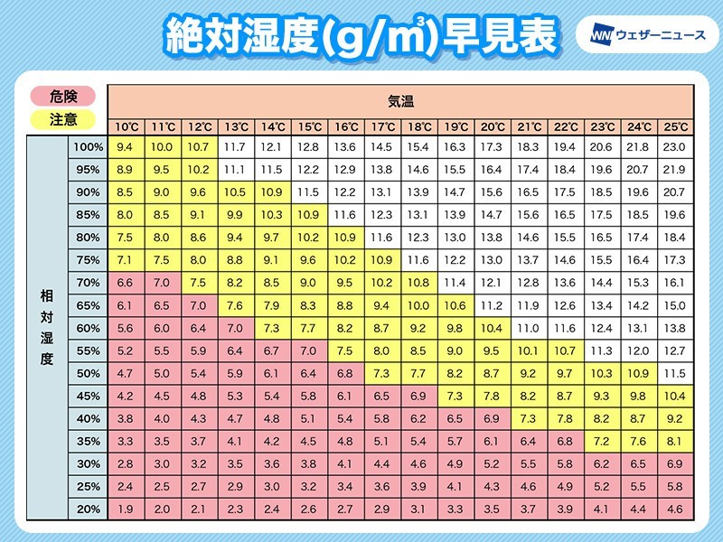 普段目にする「%(相対湿度)」は、温度によって変化します。